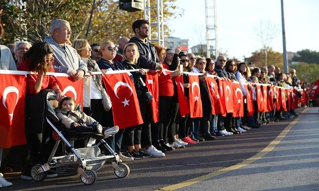 Kadıköy’de binlerce kişi “Ata’ya Saygı Zinciri”nde Gazi Mustafa Kemal Atatürk’ü anmak için el ele verdi.