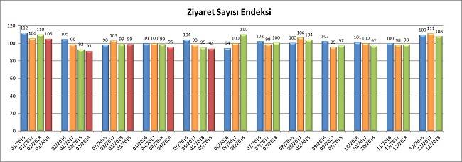 Mayıs 2019 verileri bir önceki dönemin aynı ayı ile karşılaştırıldığında ziyaret sayısı endeksinde ise %1,1 oranında bir azalma yaşandığı gözlemlendi.