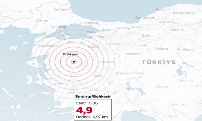 Afet ve Acil Durum Yönetimi Başkanlığı (AFAD) Deprem Dairesi, saat 10:06’da Balıkesir’in Sındırgı ilçesinde 4.9 büyüklüğünde bir deprem meydana geldi.