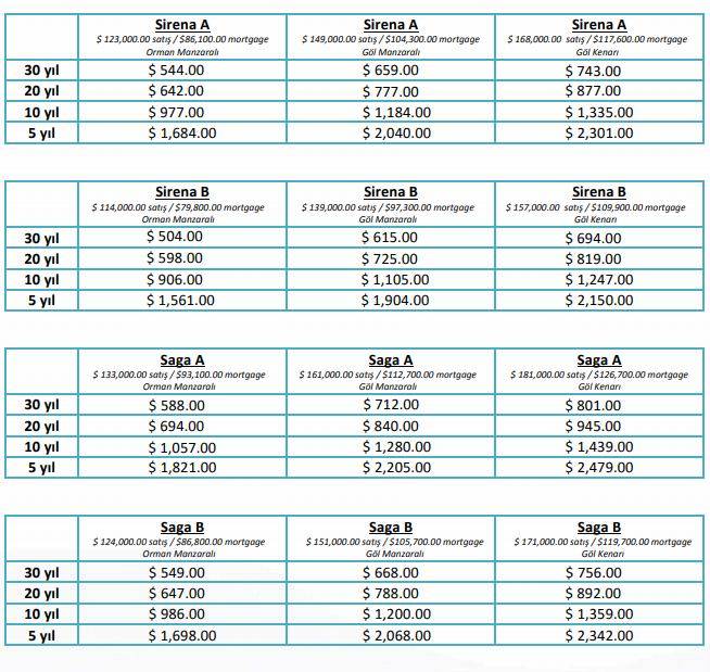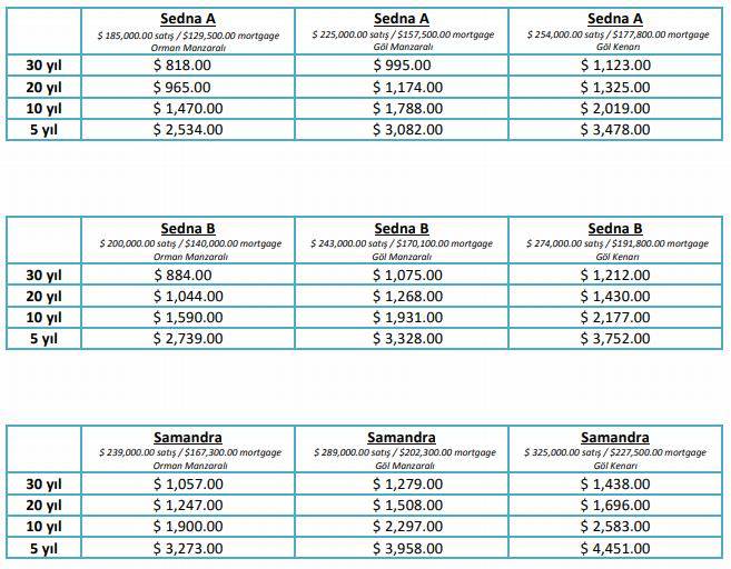 Konut Tipi                 Fiyatı ($)