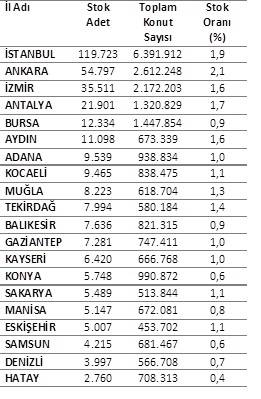 2. el konut stok adedinin en yüksek olduğu 20 il