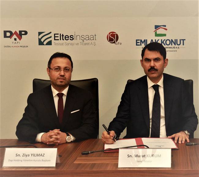 Emlak Konut GYO tarafından ihalesi gerçekleştirilen ve DAP Holding iştiraki Eltes İnşaat & İstlife Yapı İş Ortaklığı tarafından toplam 1 milyar 111 milyon 100 bin TL bedelle kazanılan Çekmeköy Arazisi İhalesi’nin imza töreni, Emlak Konut GYO Genel Müdürü Murat Kurum ve DAP Holding Yönetim Kurulu Başkanı Dr. Ziya Yılmaz’ın katılımıyla gerçekleşti.