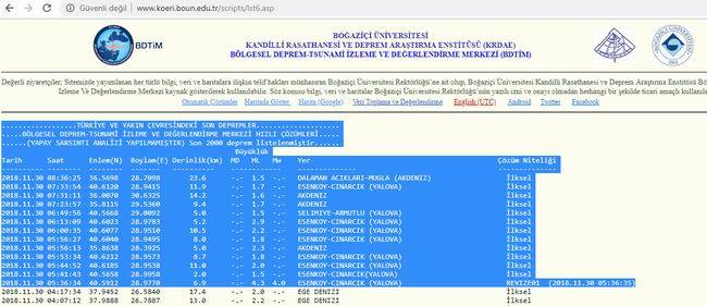 Son deprem, Kandilli’nin kayıtlarına “4.3 büyüklüğünde ve yerin 6.9 kilometre derinliğinde gerçekleşmiştir” şeklinde geçti.