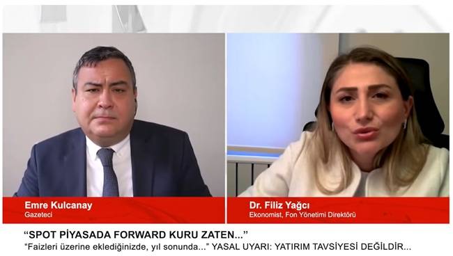 Dr. Filiz Yağcı’nın kendi yıl sonu Dolar/TL beklentisi ise 44.50 TL civarındadır. Yağcı, mevcut faizler üzerine swap puanları eklendiğinde forward piyasasının yıl sonu için zaten 44.25 TL seviyelerinde fiyatlama yaptığını belirtti. Bu tahmin, Merkez Bankası’nın rezervlerine, faiz indirim hızına ve enflasyon beklentilerindeki bozulmaya bağlı olarak şekillenmekte…