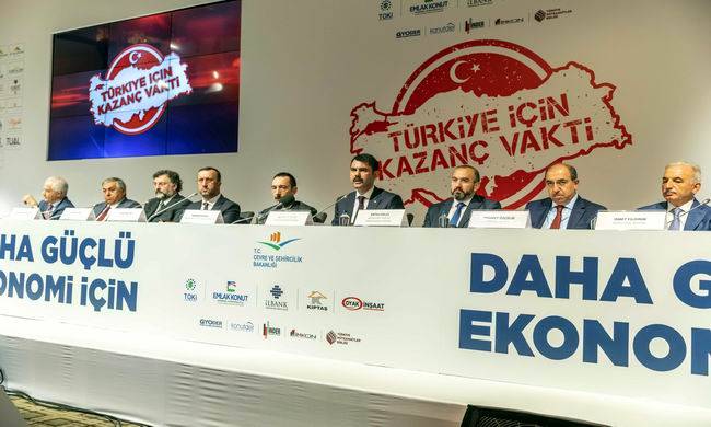 “Türkiye için Kazanç Vakti” basın toplantısında konuşan Çevre ve Şehircilik Bakanı Murat Kurum şunları söyledi: Gayrimenkul sektörümüz üzerine ne zaman düştüyse, Türkiye’nin ekonomik şartlarda sıkıntı içerisine girdiği anda üstüne düşen vazifeyi kararlılıkla yerine getirdi. Tıpkı 15 Temmuz’da olduğu gibi bugün de “Türkiye İçin Kazanç Vakti” sloganıyla bir kampanya başlattı.