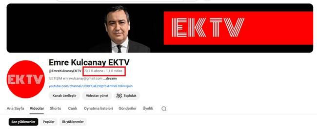 YouTube Emre Kulcanay EKTV ise sürekli artmakta olan 73 bin 786 abone (biz GÜVEN diyoruz), 17 milyon 301 bin 313 izlenme ve 1.5 milyon saat izlenme süresi ile Marketing Türkiye En Çok İzlenen Bireysel Ekonomi Kanalları listesine girmeyi başardı. EKTV, sayısı her geçen gün artan abonelerine bu listelerde daha da yukarıya çıkmanın sözünü veriyor…