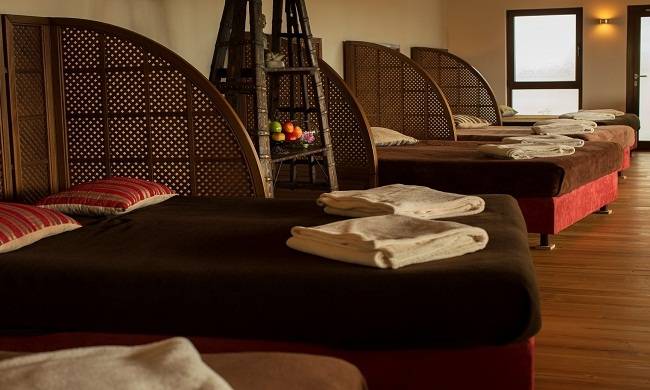 Açık ve kapalı havuzlara ek olarak otel, masaj, kozmetik tedavi ve yoga seansları da sunuyor.