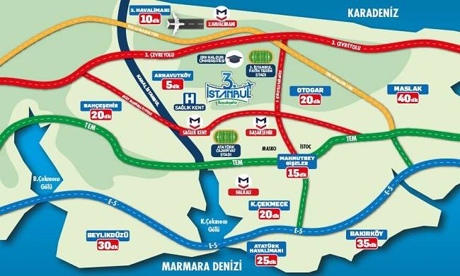 İşte 3 İstanbul Başakşehir’in yerini ve ulaşım olanaklarını gösteren kroki;