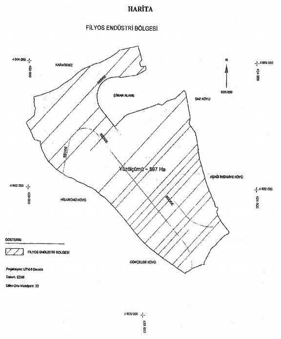 Filyos Endüstri Bölgesi sınır haritası, bugün yürürlüğe giren kararla şöyle oldu: