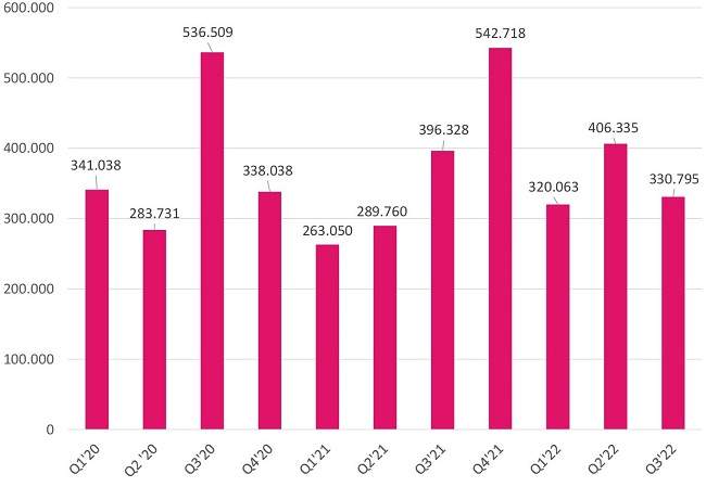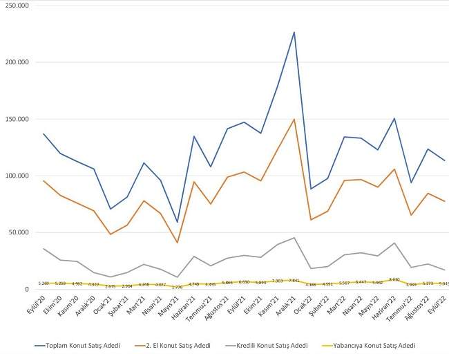 2022 yılının 3. çeyreğinde 330 bin 795 adet konut satışı gerçekleşti.