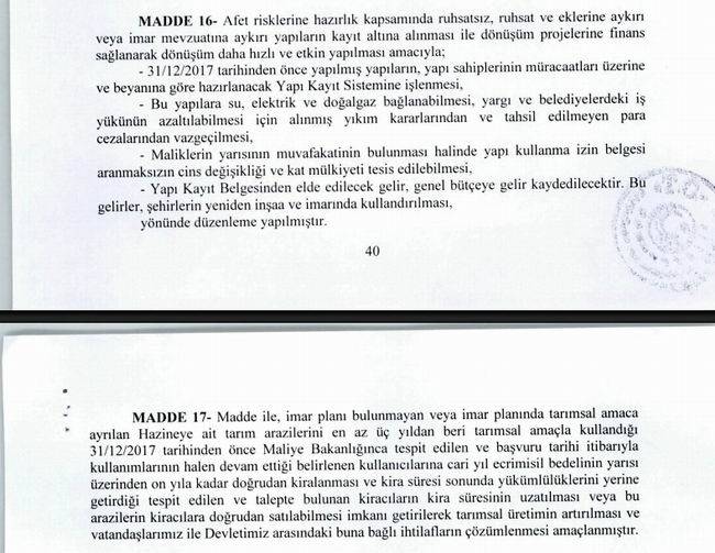 İmar Barışı ile ilgili maddeler
