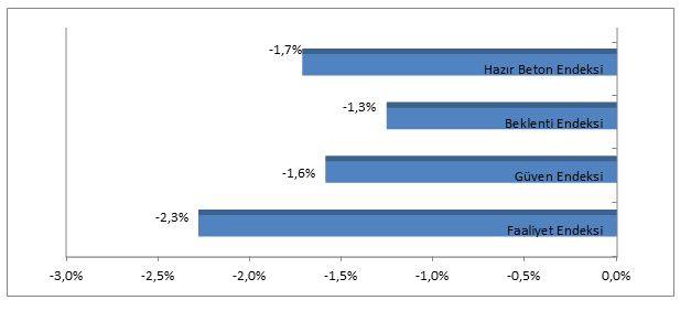 Hazır Beton Endeksi Ekim Ayı Raporu’na göre 4 endeks değeri de, önceki yılın aynı dönemine göre düşüş sergiledi. Özellikle Faaliyet Endeksi’nin, geçen yılın aynı dönemine göre %2,3 azalması, geride bıraktığımız ekim ayında geçen yıla kıyasla inşaat faaliyetleri noktasında yavaşlamanın devam ettiğini gösterdi. Hem Güven hem de Beklenti Endeksi’ndeki azalma, mali piyasalardaki kısmi olumlu havanın reel sektör tarafında yansımasının henüz başlamadığını ortaya koydu.