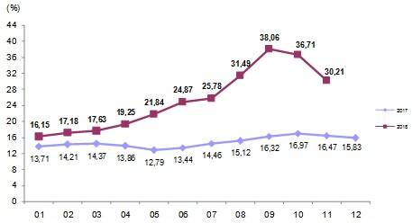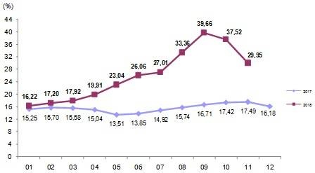 İnşaat maliyet endeksi, yıllık değişim oranı, Kasım 2018