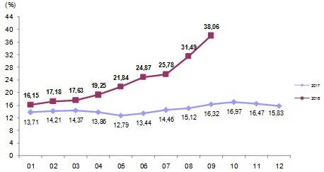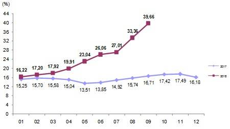 İnşaat maliyet endeksi, yıllık değişim oranı, Eylül 2018
