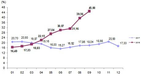 Türkiye İstatistik Kurumu (TÜİK) Eylül 2018’e ait İnşaat Maliyet Endeksi’ni açıkladı. Buna göre; inşaat maliyet endeksi (İME), 2018 yılı Eylül ayında bir önceki aya göre %5,88, bir önceki yılın aynı ayına göre %39,66 arttı. Bir önceki aya göre malzeme endeksi %8, işçilik endeksi %0,46 arttı. Ayrıca, bir önceki yılın aynı ayına göre malzeme endeksi %50,04, işçilik endeksi %17,24 arttı.