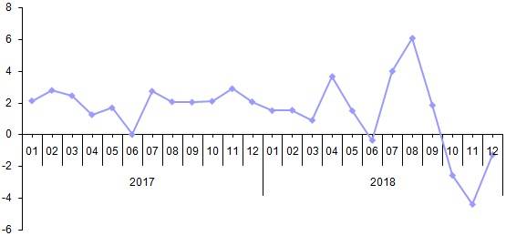 Takvim etkilerinden arındırılmış toplam ciro endeksi yıllık değişim oranı, Aralık 2018