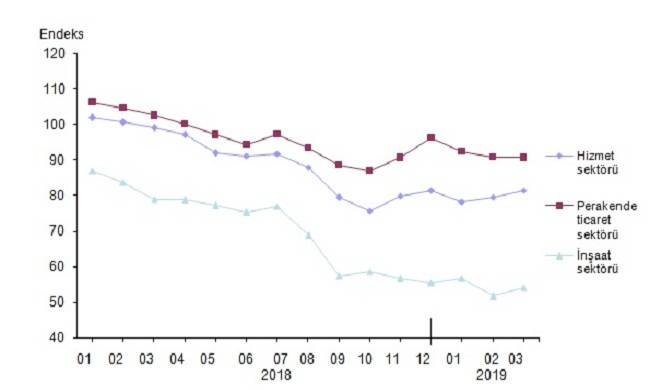 Mevsim etkilerinden arındırılmış sektörel güven endeksleri, Mart 2019