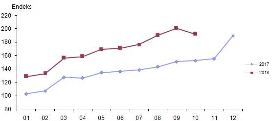 Takvim etkilerinden arındırılmış hizmet ciro endeksi, 2018 yılı Ekim ayında bir önceki yılın aynı ayına göre yüzde 34.1 arttı. Mevsim ve takvim etkilerinden arındırılmış hizmet ciro endeksi ise bir önceki aya göre yüzde 1.7 arttı.