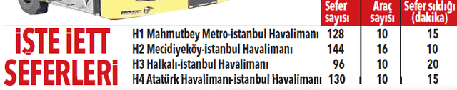 Havalimanında toplu ulaşımın ana yükünü İETT otobüsleri çekecek. Mahmutbey, Mecidiyeköy, Halkalı ve Atatürk Havalimanı’ndan hareket eden otobüsler, toplam 46 İETT aracıyla 498 sefer yapacak. Vatandaşlar 2 tam bilet (5.20 TL) basarak bu hatları kullanabilecek. Otobüslerle ilgili her türlü bilgiye ‘iett.istanbul’dan ulaşılabiliyor.