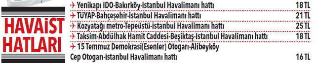 7 Nisan’dan sonra hat sayısı 20’ye çıkarılacak. Her türlü bilgiye ‘www.hava.ist’ adresinden ulaşılabiliyor. Diğer yandan Apple Store ya da google play’e ‘Havaist’ yazarak cep telefonuna indirilen mobil uygulamayla her hatta ilişkin saat bilgilerine ulaşabilirsiniz.