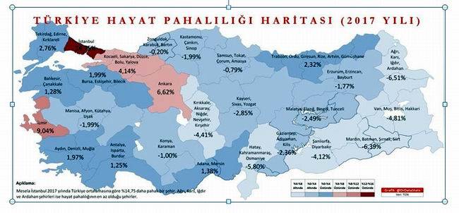 2017 yılında Türkiye ortalaması baz alınarak hazırlanan rapora göre, İstanbul en pahalı şehir olurken, bu oranın yüzde 14,75 olduğu anlaşıldı.