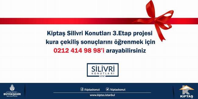 Dün (28 Nisan 2018, Cumartesi) günü düzenlenen KİPTAŞ Silivri Konutları 3.Etap kura çekilişi ve diğer kura sonuçları için KİPTAŞ Tanıtım ve Pazarlama Müdürlüğü’nü aramanız gerekiyor.