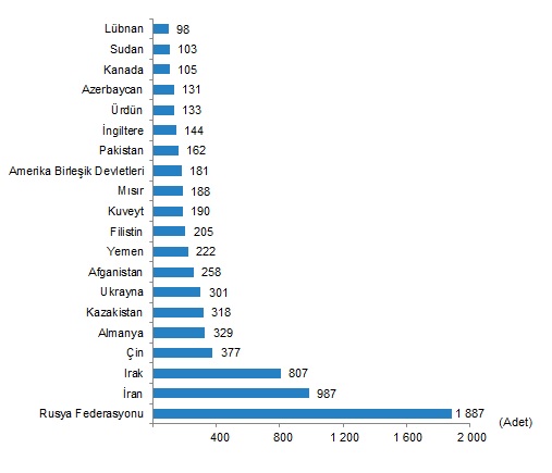 Ülke uyruklarına göre en çok konut satışı Rusya Federasyonu vatandaşlarına yapıldı
