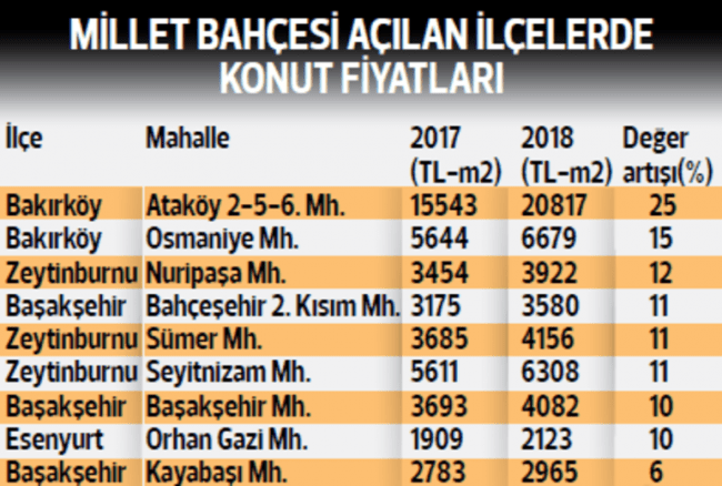 Hürriyet’ten Gülistan Alagöz’ün haberine göre; Sektör uzmanları millet bahçeleri tamamlandıktan ve piyasa hareketlendikten sonra yüzde 20 değer artışı bekliyor.