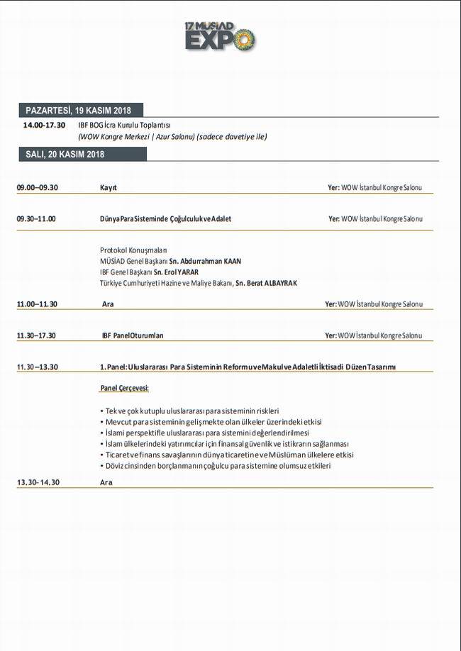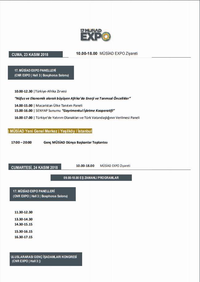MUSİAD EXPO 2018 DETAYLI PROGRAMI
