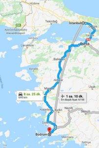 İstanbul – Bodrum arası 696 km, 8.25 saat