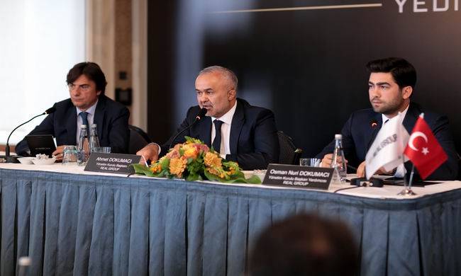 Real Group Yönetim Kurulu Başkanı Ahmet Dokumacı, Real Konaklar Yedikule projesinin tanıtım toplantısında projeye ve şirketinin yatırım planlarına ilişkin bilgiler verdi.