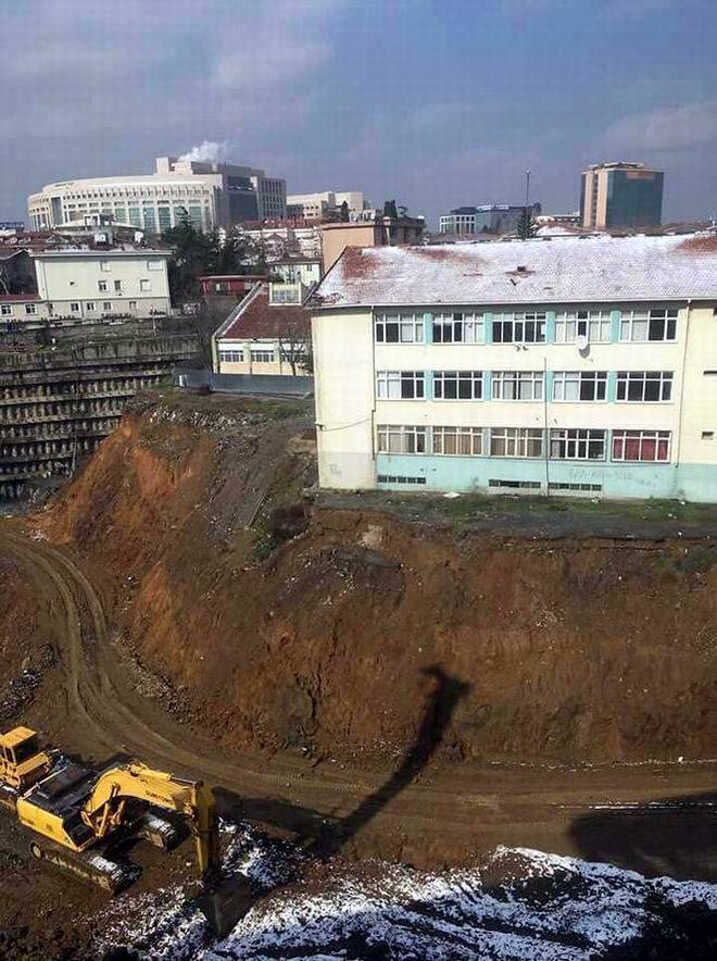 Şişli Endüstri Meslek Lisesi’nin etrafındaki AVM ve rezidans inşaatı nedeniyle, okulun hemen yanında korkutan görüntü oluştu. Okulda eğitim gören 400 öğrenci, inşaatın temel atma çalışmaları sebebiyle oluşan uçurumdan dolayı tedirgin oldu.