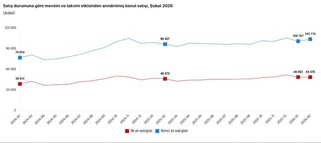 Takvim etkilerinden arındırılmış serilerde, bir önceki yılın aynı ayına göre ilk el konut satışları yüzde 5,8 arttı; ikinci el konut satışları yüzde 5,9 arttı. Mevsim ve takvim etkilerinden arındırılmış serilerde ise bir önceki aya göre ilk el konut satışları yüzde 0,2 azaldı; ikinci el konut satışları yüzde 2,9 arttı.