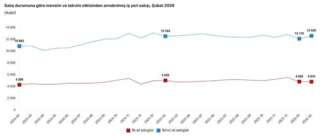 Türkiye genelinde ilk el iş yeri satış sayısı Şubat ayında bir önceki yılın aynı ayına göre yüzde 5,2 oranında azalarak 3 bin 981 oldu. İkinci el iş yeri satışları ise Şubat ayında bir önceki yılın aynı ayına göre yüzde 0,4 oranında artarak 11 bin 88 oldu.