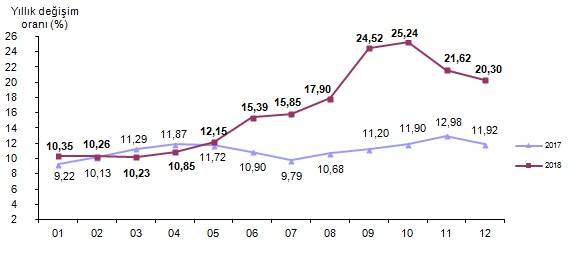 Aralık 2018 enflasyon oranı yüzde 20.30