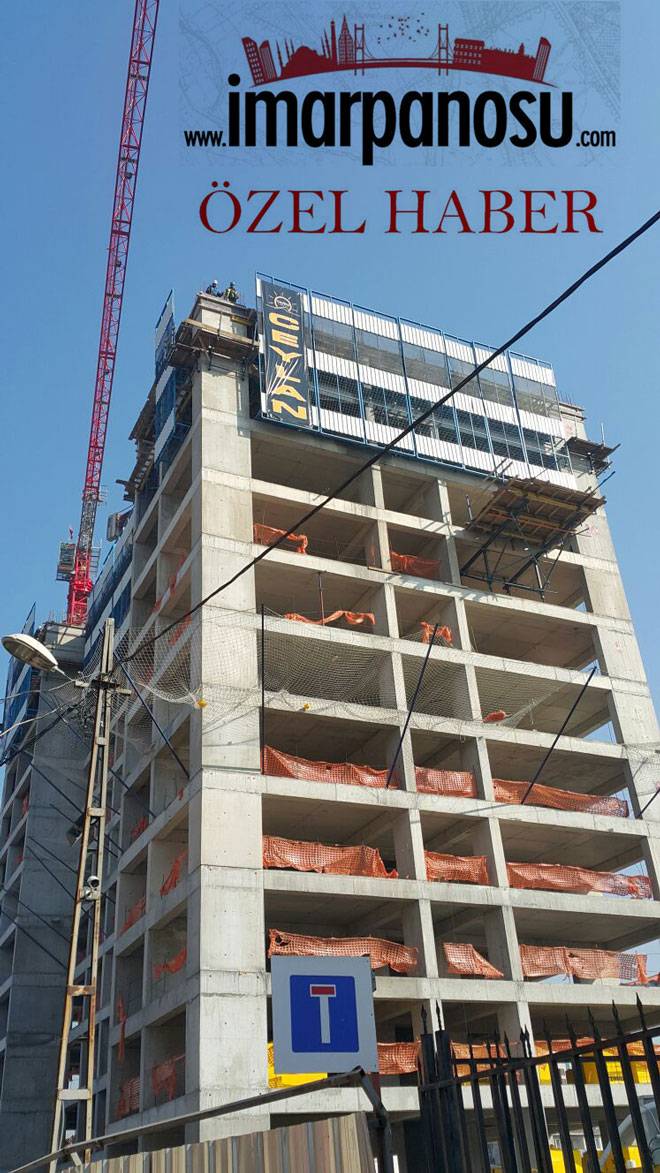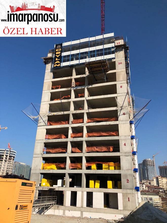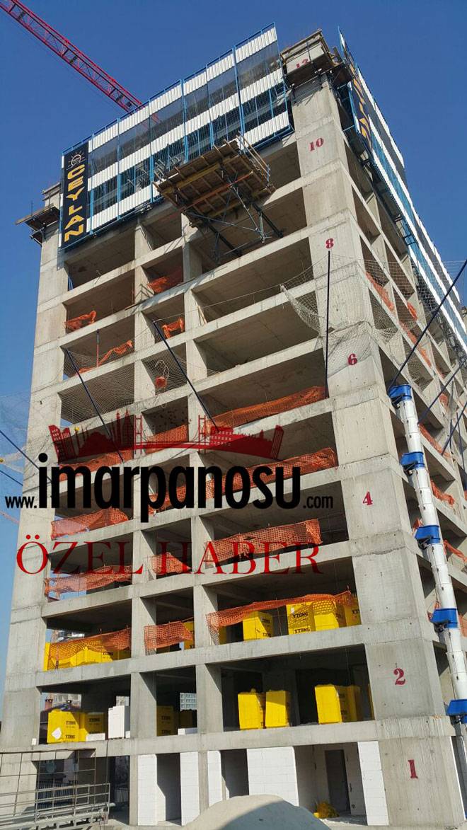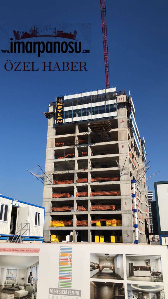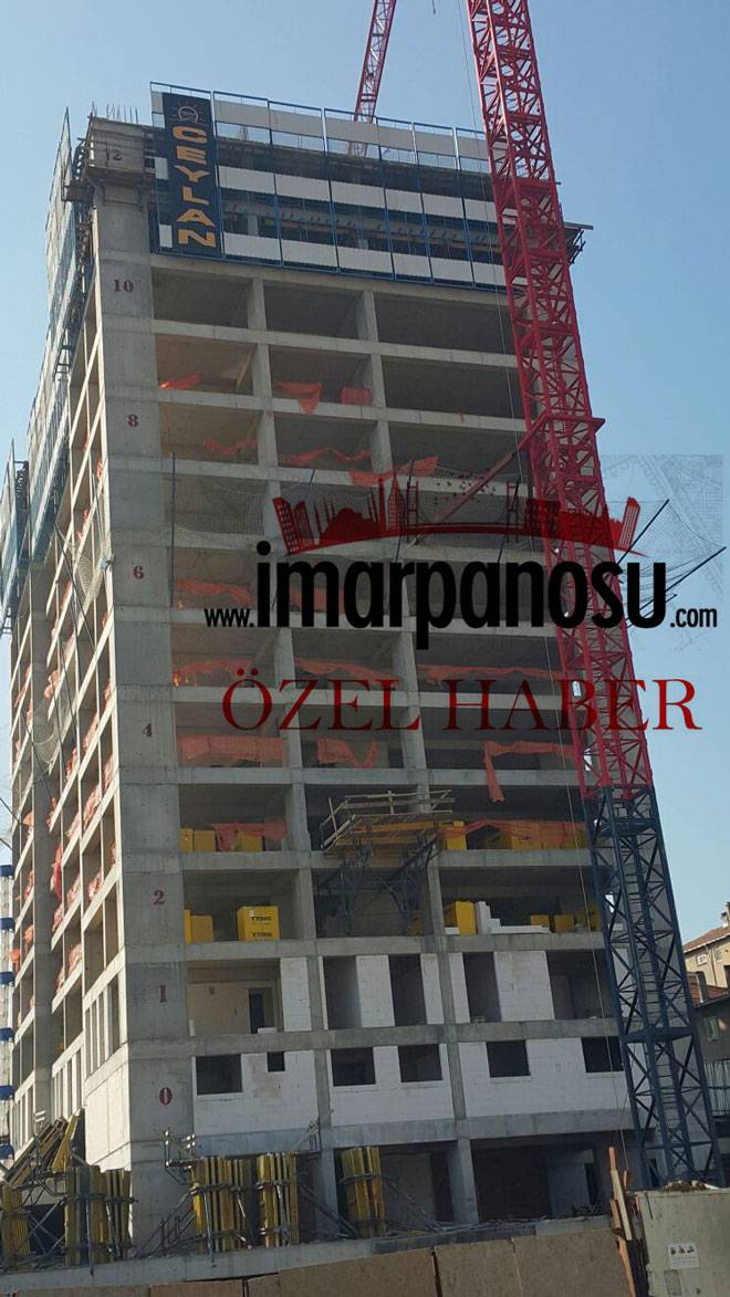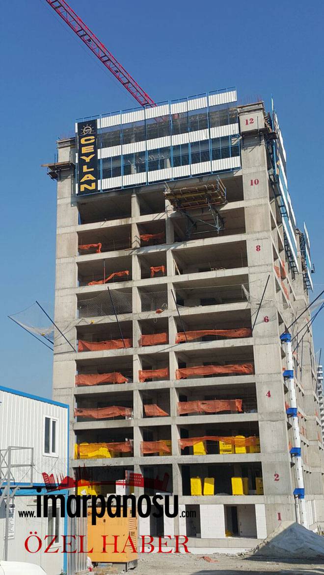11 ve 12’inci katları kaplayan ve üzerinde Ceylan İnşaat logo/markasının bulunduğu tabelalar da üst katlarda çalışan işçiler için koruma kalkanı olarak yer alıyor.